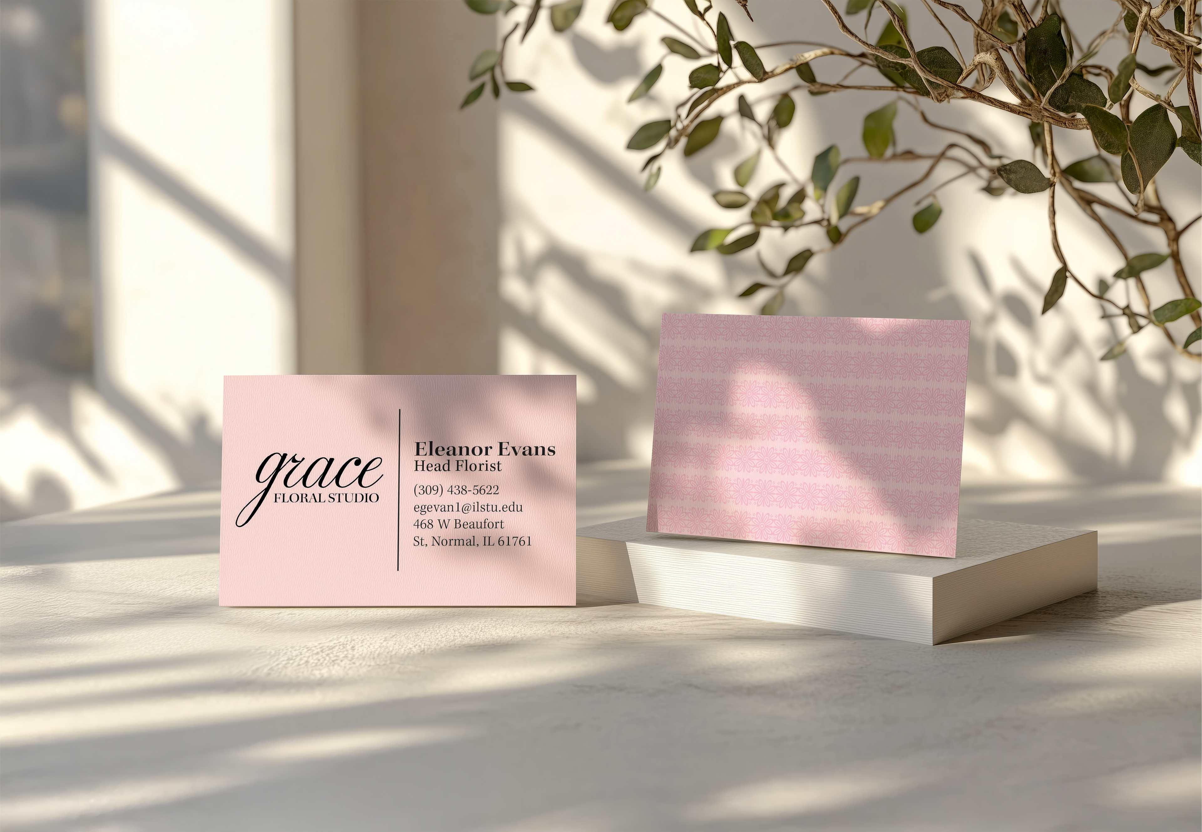 I created Grace Floral Studio as a high-end brand with a minimalist yet inviting aesthetic. My goal was to balance timeless elegance with contemporary design, appealing to a younger, design conscious clientele. The process included researching boutique floral brands, defining a cohesive visual identity, and developing a complete brand system encompassing a custom logo, typography hierarchy, and refined color palette. The final identity embodies sophistication through clean lines, delicate typography, and a soft yet confident tone that mirrors the artistry and precision of modern floral design.